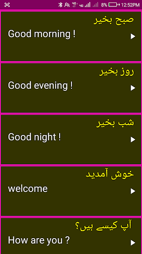 . This app is made to teach you Spoken English from Urdu . Now speak English easily with the help of this app.