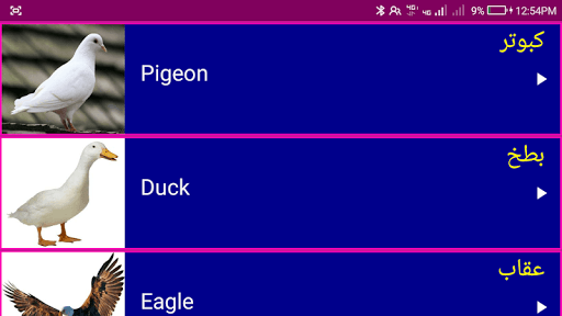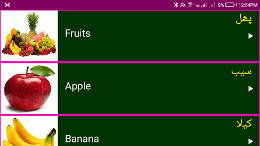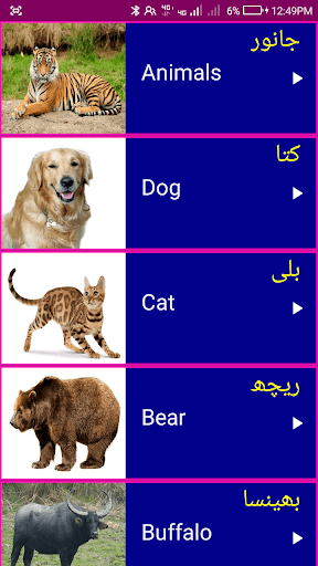 2. English words are provided under many useful categories like animals , birds, fruits , vegetables , colors , people , numbers and sentences to learn important English vocabulary from Urdu easily.
