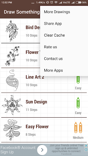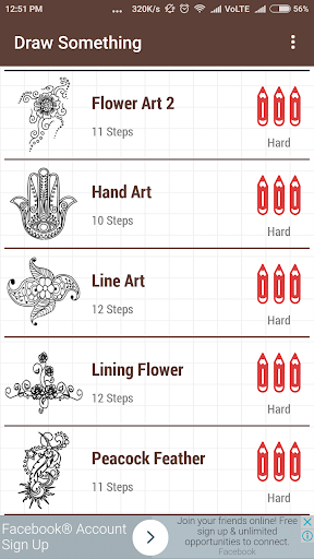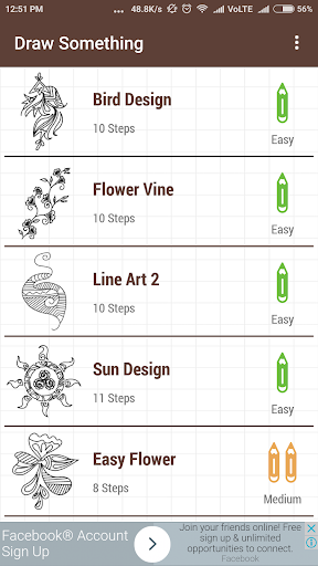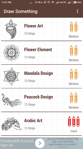 Each mehndi drawing is divided into few steps, and it is easy to follow so this app shows you how to draw mehndi designs step by step. We also provide slide for children who can see the next illustrations step by step and build up their skills and confidence level with lots of fun.