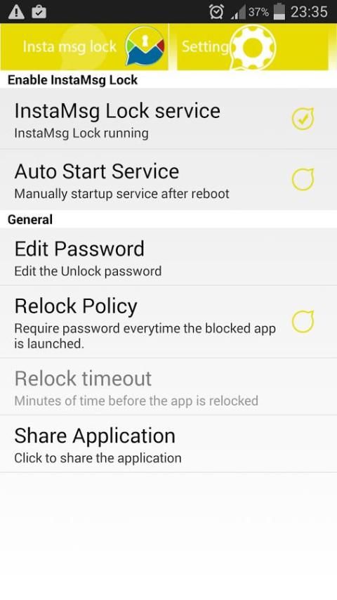lock for instamessage allows you to keep in touch with your friends and enjoy your time discussing with them in all security. anytime you leave your phone with your GF/BF or any other person who you don't trust , and you thought that they will not hesitate to access to your private conversation once it is possible. so you don't have to worry about such things. right now the solution is between your hands to set password lock for instamessage and live the protection and security of instamessage .