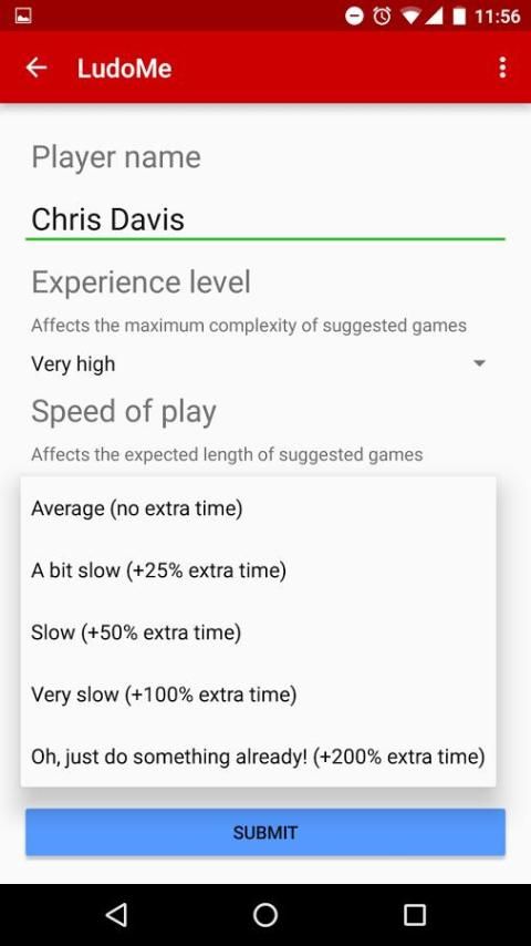 LudoMe is a board gaming companion app that helps you choose what to play during your gaming sessions. It downloads your collection information from boardgamegeek.com, and allows you to quickly and easily create player profiles for your friends. You can then just specify who is playing and how long you have available, and LudoMe does the rest!