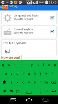 (သို့သော် android version 4.4 အောက် ဖုန်းများတွင် သွင်းထားသော ယူနီကုဒ်သည် ၁၀၀ ရာနှုန်း ပြီးပြည့်စုံမှုမရှိသဖြင့် M3 Keyboard ၏ အထူးလုပ်ဆောင်ချက်များကို ကောင်းစွာ အသုံးချနိုင်မည် မဟုတ်ပါ။)