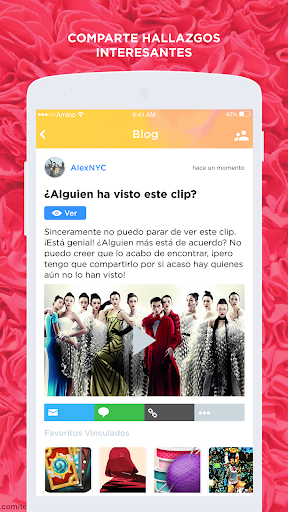 La red social más grande solamente para los amantes de la moda. Conoce otras personas como tú y discute tus estilos favoritos, diseñadores, y más. Comparte tu opinión con una audiencia enorme de personas con ideas afines a las suyas. En esta aplicación puedes: