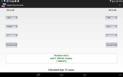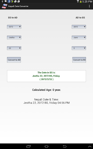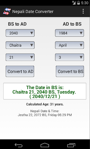 ဒီနီပေါဘီးလီအတွက် converter application သည်နီပေါရက်ကိုအင်္ဂလိပ်ဘာသာသို့ကူးပြောင်းခြင်း Bikram Sambat BS English ရက်စွဲကြော်ငြာနှင့်အင်္ဂလိပ်ရက်စွဲကြော်ငြာဘော်လ်လီရက်စွဲ Bikram Sambat ။ရိုးရိုးရှင်းရှင်းပြောရရင်အဲဒါကိုနီပေါရက်ကို converter လို့ခေါ်တယ်။ဤ application သည်အသက်အရွယ်တွက်စက်အဖြစ်အလုပ်လုပ်သည်။ထို့အပြင်၎င်းသည်နီပေါနိုင်ငံရှိလက်ရှိနေ့စွဲနှင့်အချိန်ကိုပြသည်။နီပေါ၏အဘ်၏အဓိကလက္ခဏာမှာ -