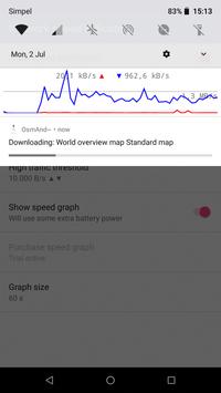 The status bar notification shows the network speed in numbers or optionally as graph.
