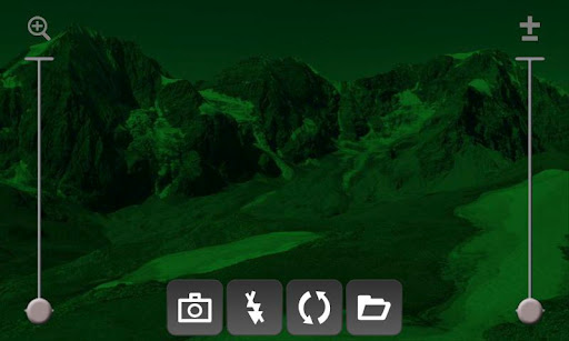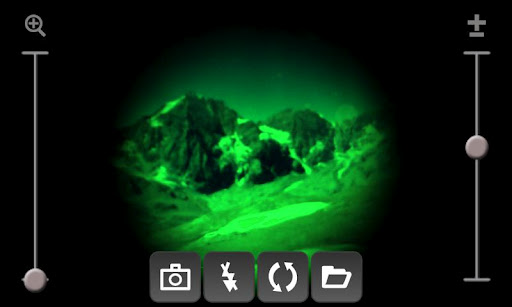 Use your phone like a real live nightvision viefinder.NightVision camera simulates a live night vision camera effect. Two modes are provided: a fullscreen and a viewfinder mode.Features: Autofocus touch viewfinder to focusflash light videolight, torch Zoom Geotagging GPS EXIF Camera orientation EXIF hardware accelerated Device dependentNote: This is only a simulation and not a real night vision camera. Thus, dark regions which do not emit enough light will remain dark.