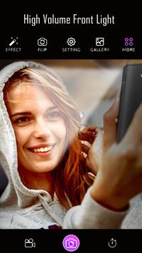 You are no longer require to ask your friend to turn on his phone's flash or to be near a light source! What the app does is that the front camera preview will have a white color surrounding that will lit your face.