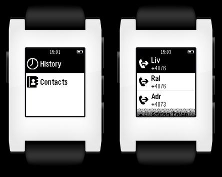 Make calls from your wrist using Pebble. Select from call history or predefined contacts.
