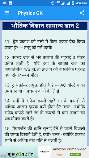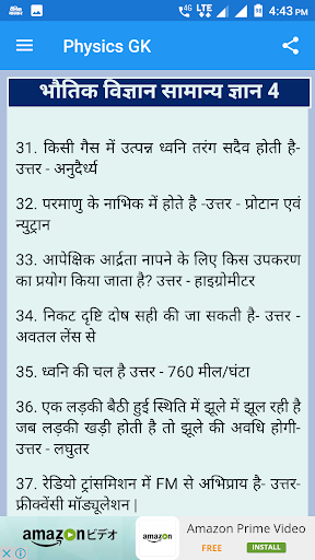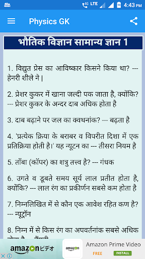 This app contains various general knowledge question and answer in hindi for various competitive examination, This Physics Gk in hindi is very helpful for hindi medium students.