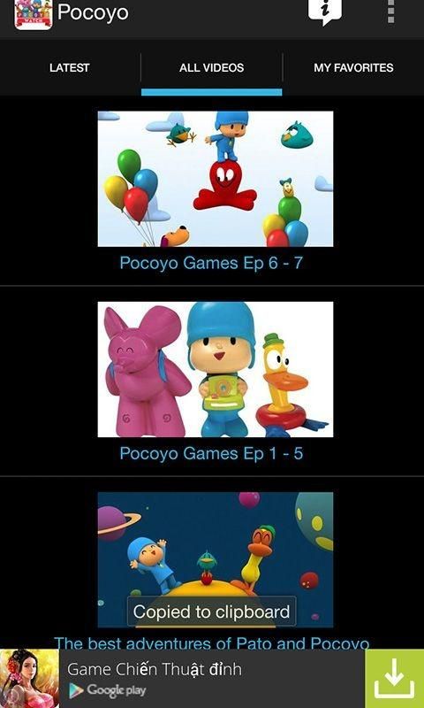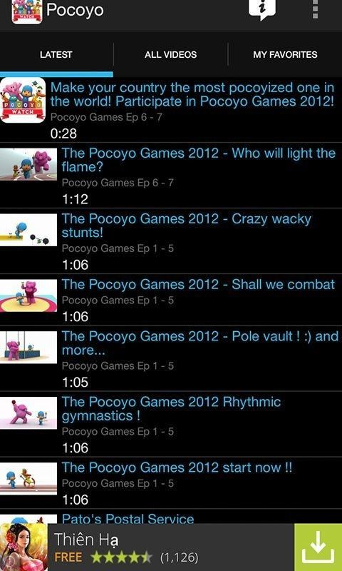 Pocoyo is a curious toddler dressed all in blue, from his blue cap to his blue jumpsuit. He's full of fun and perhaps a touch of good-natured mischief. His friends include Pato, the yellow duck; Elly, the pink elephant with a blue backpack; Loula, his faithful dog; Sleepy Bird, the droopy-eyed blue-green bird always asleep in her nest; and many others. The Narrator greets little Pocoyo every day and gently suggests an answer to anything that puzzles him. But just as often, the Narrator himself learns something valuable. Pocoyo's computer-animated world is full of simple shapes, bright colors and cheerful music. UPDATE WEEKLY!!!!!!!!!!!!!!!! Like this application? Want more movie for your kids? - Share this application - Rate & Give us your comment The content provided in this app is hosted by YouTube and is available in public domain. We do not upload any videos to YouTube or not showing any modify content. *** Please Note: Please report to YouTube or email us if any movie we linked is unauthorized or violating copyrights. This app is just customizing the videos in a more user-friendly way for users And yes, we need install Youtube to play video in this app.