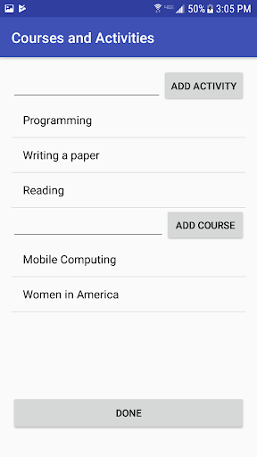 • Input up to 4 activities you perform while working on a course