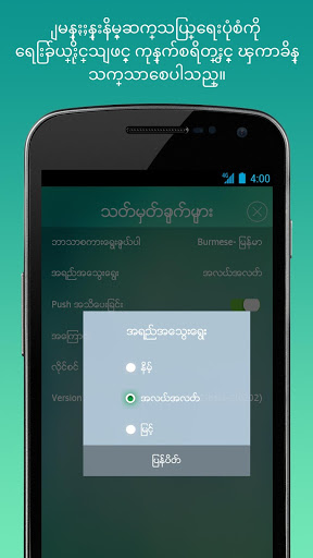 (သို႔) အင္တာနက္ဆက္သြယ္ေရး ႀကိဳက္ရာေရြြးျပီး နားဆင္ႏုိင္ပါသည္။