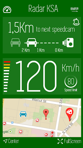 Radar KSA displays the positioning of speed cameras in Saudi Arabia, as well as your position on the map and the speed you are driving at.