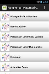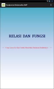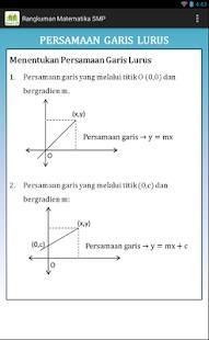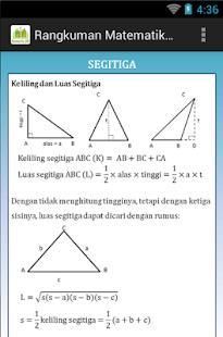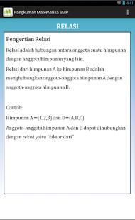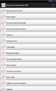Rangkuman Matematika SMP ini merupakan aplikasi yang memuat uraian-uraian ringkas beserta rumus-rumus matematika untuk pelajar SMP.