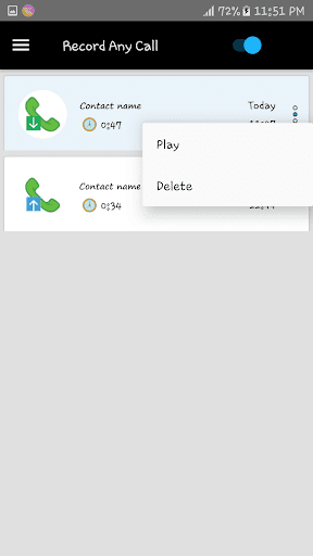 Google Play ရှိလူကြိုက်များသောအခမဲ့ခေါ်ဆိုမှုမှတ်တမ်းတင်ထားသော applications များထဲမှတစ်ခုဖြစ်သောမည်သည့်ခေါ်ဆိုမှုမဆိုရိုးရှင်းသောမ frills app တစ်ခုဖြစ်ပြီးဖုန်းပြောဆိုမှုများအားလုံးကိုသင်၏ Android သို့တိုက်ရိုက်မှတ်တမ်းတင်ရန်ခွင့်ပြုသည်။ အခြားခေါ်ဆိုမှုမှတ်တမ်းတင်ထားသောအက်ပလီကေးရှင်းများနှင့်မတူဘဲသင်၏အသံသွင်းချက်များသည်သီးသန့်ဖြစ်ပြီးတတိယပါတီဆာဗာတွင်သိမ်းဆည်းထားခြင်းမရှိပါ။