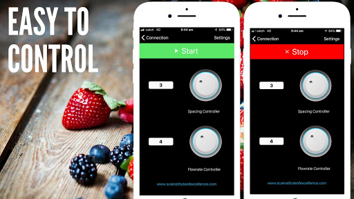 4. Now you can control the spacing and flow rate of the seeder. To Start/Stop the Seeder, simply toggle Start/Stop switch in the App.