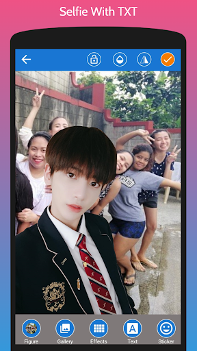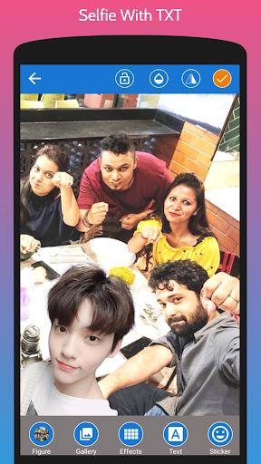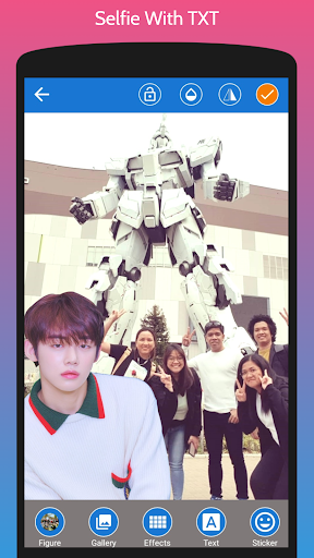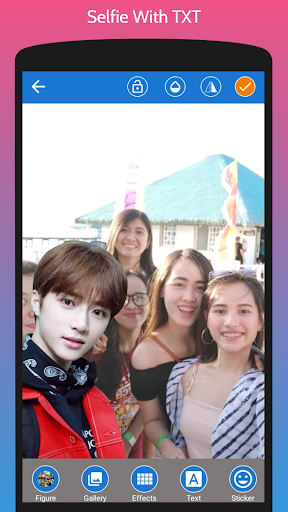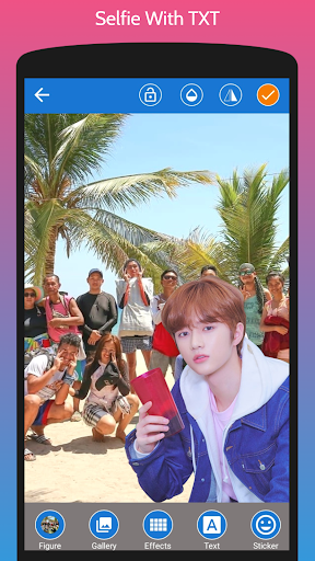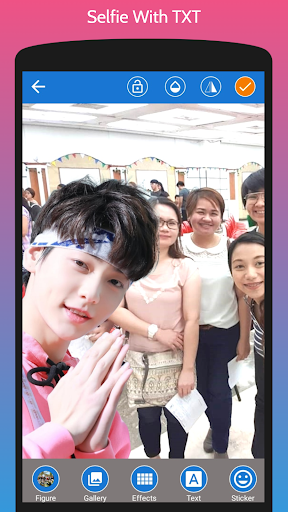 His background make her became superstar. Everyone idols him, but not every fans has lucky to meet him. With this android app called Selfie With TXT Photo Editor you can meet him anytime and anywhere without cost to fly to meet him. If you are truly fans of TXT you must download this app and share to your friend and tell them you've met with TXT.
