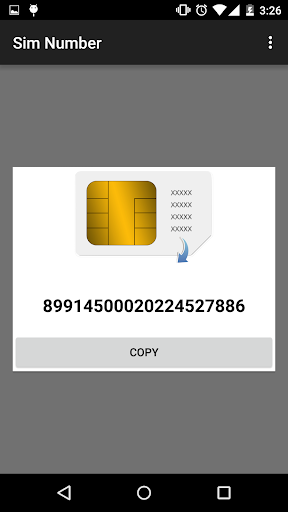 Shows simNumber of current sim used by android device which can be copy and pasted for required purposes.