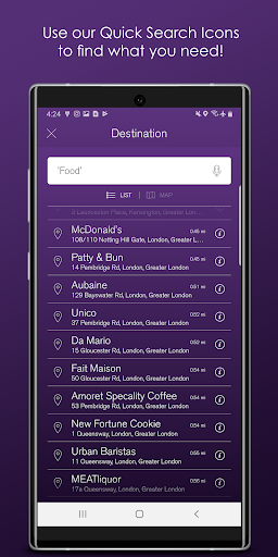 ရှာဖွေမှုနည်းလမ်း 5 ခုအကြားရွေးချယ်ပါ။အမည်, လိပ်စာသို့မဟုတ်သော့ချက်စာလုံးများဖြင့်တည်နေရာကိုထည့်ပါ (ဟမ်ဘာဂါ, ရုပ်ရှင်ရုံ),သို့မဟုတ်လိုချင်သောနေရာတစ်ခုကိုညွှန်ပြရန်မြေပုံပေါ်ရှိ PIN နံပါတ်ကိုချပါ။