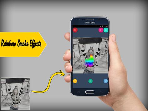 There is : simple smoke - colorful smoke- rainbow smoke effects and also there is emojis and stickers to amaze you friend & add something extra to your selfies.