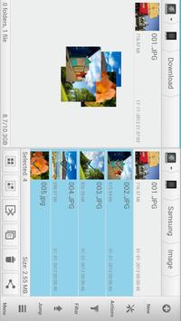 Two independent panels allows for seamless file transfer with drag and drop. Just hold your finger on a file and drag it to other panel. In this way you can easily transfer files between various locations including PC shares, cloud and root folders.