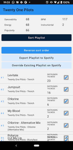 Spotify Premium ဖြင့်သာ - သင်၏ဖွင့်စရာစာရင်းများကိုပြန်လည်ဖွဲ့စည်းခြင်းနှင့်အကောင်းဆုံးနားထောင်ခြင်းအတွေ့အကြုံကိုဖန်တီးရန် danceability, valence နှင့်အခြားသတ်မှတ်ချက်များကိုတိုးမြှင့်ခြင်းဖြင့်လမ်းကြောင်းများကိုပြန်လည်ဖွဲ့စည်းပါ။ သင်၏လက်ရှိဖွင့်စရာစာရင်းများမှအမိန့်မိတ္တူအသစ်များကိုဖန်တီးပြီး၎င်းတို့ကို Spotify သို့သိမ်းဆည်းပါ။