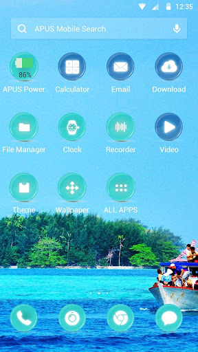 1. Summer sea cool round icon -APUS Launcher theme is free, but only compatible with APUS Launcher. If you want to apply it, please install APUS Launcher on your Android phone. Or download new theme and APUS Launcher. When you install APUS Launcher, there are variety of themes in APUS theme & wallpaper shop, such as phonex, lovely unicorn, pink diamond mickey, Red heart, luxury, gold, business, black, simple, magic, comic, football, basketball, cricket, Valentine's Day, New Year, Halloween, Christmas, cute cat and dog, butterfly, dawn theme. Install APUS launcher to enjoy more themes.