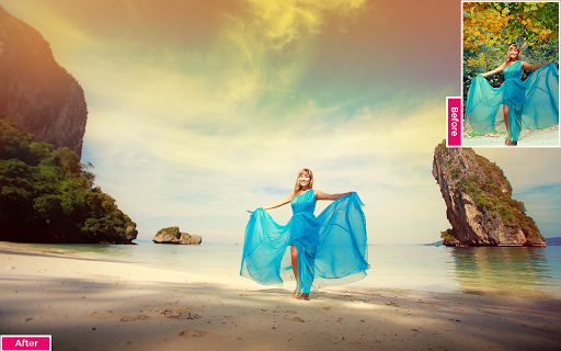 Take a photo from photo gallery or from cloud storage or take selfie from our selfie camera,using our advanced auto crop tool erase your background and place them in our beautiful photo editor sunset background collections. using our editor tool apply unique awesome photo effects and see yourself in 3d and HD Sunset Photo Effects. Add sticker to your Pics art from our stickers pic lab.Add your status Quotes to them with colorful fonts and upload them as your profile Photo in whatsapp , twitter , Instagram and facebook.