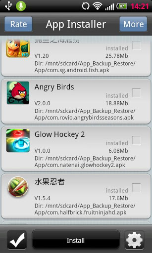 Best app installer to install apps from SD card.Easy amp; fastest tool to install apps.apk from SD card.Feature show uninstall apk ICON show app size information Delete apps from SD card show installed app information. Install apps from SD card Batch install amp; deletesearch apps in google Market Support froyo amp; Gingerbread Sort by name,size or date1Easy install apps from your SDcard2Quick save apps to SDCard3Filtered system appsSuper App Installer allows you to install applications.apk from your external storage e.g. SD card.JiangYou Partner, Make Life EasierDescriptionSuper App Installer is a tool to install apps from apk files on SD card. It will list all the apk files on the SD card, and you can select apps that want to install, and click quot;Installquot; button to install them.If there is a apk file on the SD card but you cannot find it in the app list, you can just click quot;Menuquot;gt;quot;Refreshquot; to refresh list.Keywords:app installer,install,app install,installer,appinstaller,app installer,easy installer,apk install,apk installer,apk remover,batch install,app share,apk send,qq