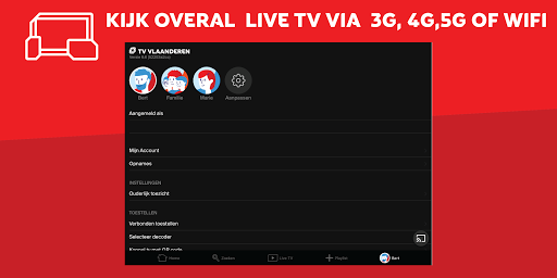 • Satellite TV Subscription သို့မဟုတ် TV Vlaander မှ TV Vlaander မှအက်ပလီကေးရှင်းအမျိုးအစားပေးသွင်းခြင်း သင်၏အချက်အလက်များကိုသင်၏ "TV Flanders" မှ Sign up လုပ်ရန်သင်၏အချက်အလက်များကိုသုံးပါ။ မင်းဂြိုလ်တုတီဗီဖောက်သည်လား, သင်၏အကောင့်ကို www.tv --vlaandandenenen.bebebe/mijntvvvvvvvllaanderen မှာအခမဲ့အကောင့်ဖန်တီးပါ။ သင့်မှာဂြိုလ်တုတီဗွီစာရင်းသွင်းပေးသွင်းမှုမရှိဘူး, ဒါပေမယ့်တီဗီ flanders app နဲ့တီဗွီကြည့်ချင်ပါသလား။ ထိုအခါ www.tv-vlaandandenen.bebex/tv-via -ininernet သို့သွားပါ