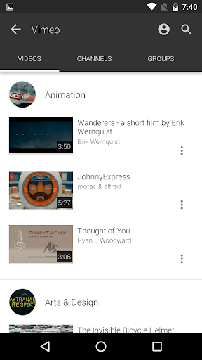 - Search for and play videos from YouTube and Vimeo
