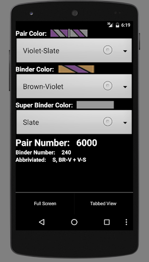 You can select the pair color, binder color, and super binder; and the calculator will translate it into the pair number, binder number, and the abbreviated form this pair would be written in.