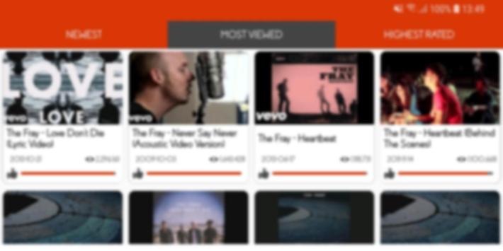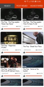 The Fray Video Song is the application by fan made. It updates continously top videos from The Fray Youtube channel and provide easy way to play them directly. These best videos are collected and sorted by time updated, total views and rating, which help any fan of The Fray can see and play the famous music video in the easiest way.