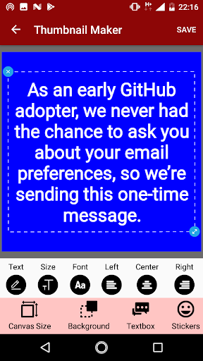 App is easy to use and intuitive (Text, Stickers, Filters, Canvas size ...)