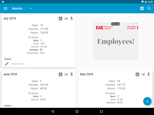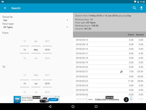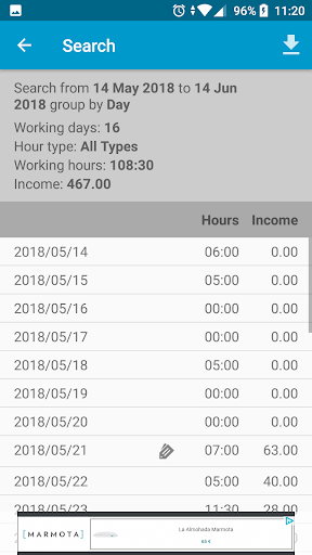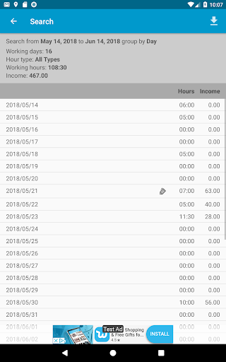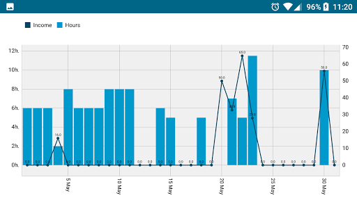 •သင်နေ့တိုင်းသင်သုံးစွဲခဲ့သည့်နာရီများကိုထည့်ပြီးတည်းဖြတ်ပါ။သင်သည်မတူညီသောနာရီနှင့်စျေးနှုန်းအမျိုးအစားများကိုသုံးနိုင်သည်, ထို့ကြောင့်ရိုးရိုးရှင်းရှင်းရရှိသောငွေကိုတွက်ချက်နိုင်သည်။ •နှစ်စဉ်, လစဉ်, နှစ်ပတ်လည်အခမ်းအနားသို့မဟုတ်အပတ်စဉ်သို့မဟုတ်အပတ်စဉ်အနှစ်ချုပ်များကိုအလျင်အမြန်ကြည့်ရှုပါ။ •တိုင်ပင်ဆွေးနွေးအချိန်ကာလတစ်ခုမှာသူတို့ကိုတစ်နာရီ, ရက်သတ္တပတ်များ, လများ, လများ, လများ, လများ, လများ, လများ, လများ, နှစ်များ, နှစ်များ, နှစ်များ, နှစ်များ,သင်လုပ်သည့်မည်သည့်ရှာဖွေရေးကိုမဆို။