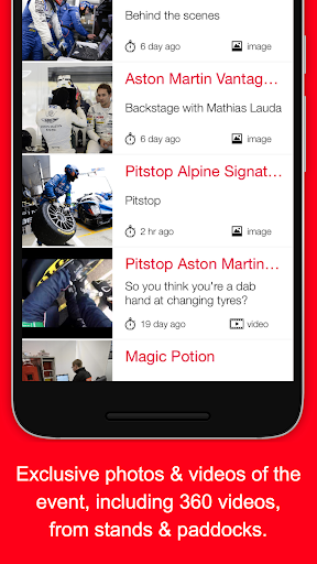 - Exclusive Stories : behind the scenes photos & videos of main motorsports events, including 360 videos, from stands & paddocks. Live coverage via Facebook & Periscope with teams and pilots.