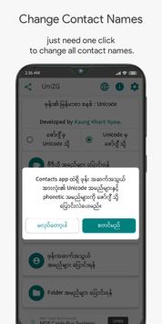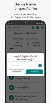 ယခု app သည္ Contacts, ဗီဒီယို ၊ သီခ်င္း စေသာ ဖိုင္အမည္မ်ားကို Zawgyi မွ Unicode သို႕မဟုတ္ Unicode မွ Zawgyi သို႔ အျပန္အလွန္ ေျပာင္းေပးႏိုင္ေသာ application ျဖစ္ပါသည္။ အမည္မ်ား ေျပာင္းေနစဥ္တြင္ app ထဲမွ လံုးဝ ထြက္မသြားပါႏွင့္။
