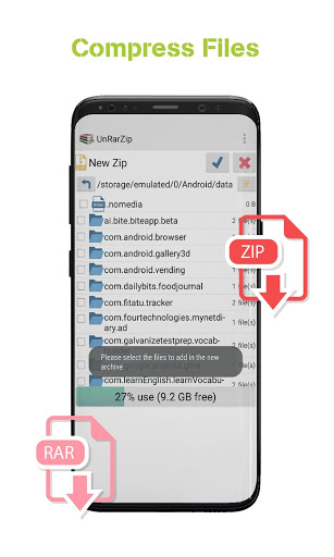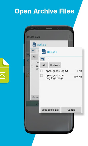 UNRAR ၏ infr နှင့် unzip အင်္ဂါရပ်များသည် decompression မပါဘဲမော်ကွန်းတင်သောအကြောင်းအရာ display ကိုဖွင့်နိုင်သည်။ ဖိုင်များကိုရွေးချယ်ခြင်းနှင့်၎င်းတို့ကိုထုတ်ယူခြင်းအားဖြင့်အချိန်ကိုချွေတာပါ။ ထို့နောက်ဖိုင်များကို UNRAR နှင့် Unzip feature တွင်တိုက်ရိုက်ဖွင့်ပါ။ ရုပ်ရှင်တစ်ခုလုံးကိုထုတ်ယူနိုင်ပြီးဤ RAR zip file extractor နှင့်မိနစ်ပိုင်းအတွင်းထုတ်ယူနိုင်ပါသည်။