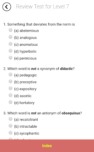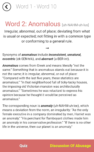 You ဝေါဟာရဆယ်ဆင့်ကိုဆက်လက်လေ့လာသွားမှာပါ၊ အဆင့်တစ်ခုစီကအရင်ထက်စာရင်ပိုပြီးခက်ခဲတယ်။ ဥပမာအားဖြင့်၊ အဆင့် ၁ တွင်အရွယ်ရောက်သူ ၆၀ မှ ၇၀ ရာခိုင်နှုန်းခန့်နှင့်ရင်းနှီးကျွမ်းဝင်သောစကားလုံးများပါရှိသည်။ ဆိုလိုသည်မှာအထက်တန်းကျောင်းသားများစွာနှင့်ကောလိပ်ဘွဲ့ရအများစုတို့၏စကားများဖြစ်သည်။ အဆင့် ၅ အဆုံးတွင်သင်၏ဝေါဟာရကို ၇၅ ရာခိုင်နှုန်းသောရာခိုင်နှုန်းအထိမြှင့်တင်ပေးပါလိမ့်မည်။ ပညာတတ်အရွယ်ရောက်သူအားလုံး၏ထိပ်ဆုံးဖြစ်သည်။ Level 8 အဆုံးတွင်သင်၏ဝေါဟာရသည်အဆင့်မြင့်ဒီဂရီများအပါအ ၀ င်အမှုဆောင်အရာရှိများနှင့်ကျွမ်းကျင်သူအများစုထက်သာလွန်လိမ့်မည်။ ပြီးတော့ဒသမနဲ့နောက်ဆုံးအဆင့်ကိုပြီးရင်လူ ဦး ရေရဲ့ ၉၅ ရာခိုင်နှုန်းကျော်ကျော်တိုးတက်လာလိမ့်မယ်။ သင်တစ်ထောင်လျှင်လူ ဦး ရေအနည်းငယ်သာလိုက်နိုင်သည့်စကားလုံးများကိုလက်နက်တစ်မျိုးဖြင့်အမိန့်ပေးလိမ့်မည်။