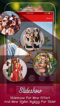 Share via social media platforms: Share stunning videos to popular social media sites photo video maker app.