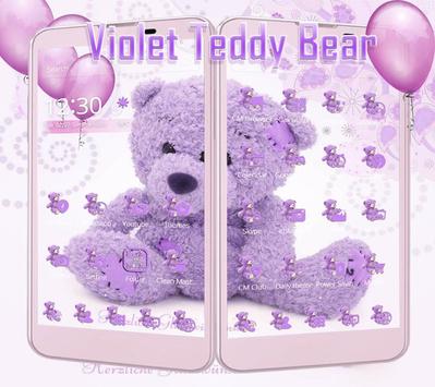 Violet teddy bear lock screen theme with lilac toy bear live wallpaper