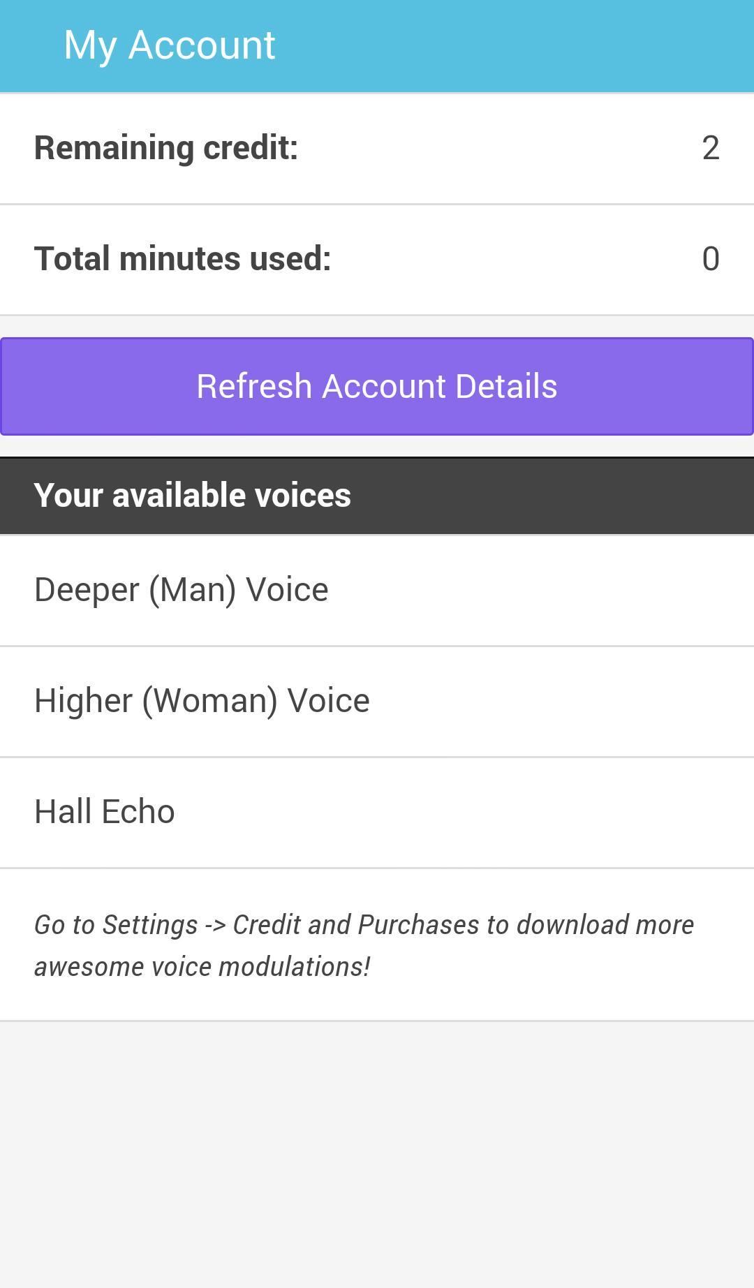 - You can now hear how each voice will sound using the app. To view these options go to "settings" > "Credits & Purchases", then you will see the speaker icon next to each voice to hear the different voices.