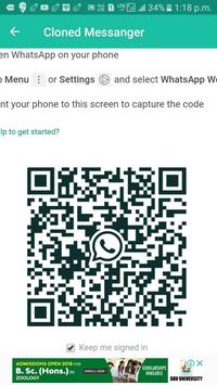 Whats Web Messenger Clone application helps you to access a Whatsapp Account into your Smartphone, even if the paired Whatsapp is not with you. The only conditions is both the devices should have active internet connection. Using this app you can read chats and send and receive messages, send and receive files ff the cloned account.