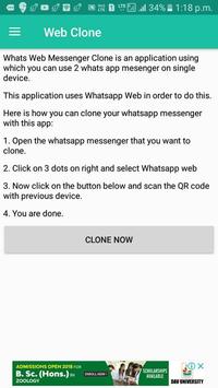 This app is created by us and it is not an official WhatsApp application. We are in no way associated with Whatsapp Inc. This app does not collects or save any user information or credentials. We are using whatsapp web to clone whatsapp messenger. This Application doesn't intend to hack anything but is just for public interest, to easily monitor or do parental control or for knowledge purpose only. Use this application constructively.