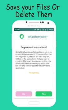 WhatsRemoved is the new free app for Detect and saves deleted messages Install WhatsRemoved for recovery, then track WhatsApp and select what content you want to save and you will not miss anything.