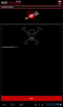 WiFi Hacker Prank scans for available wifi networks and displays security information about them. WiFi Hacker highligts routers with potentially weak protection. The hacking begins when you tap on a wifi network in range. A scary looking black box appears and pretends to break the networks protection.