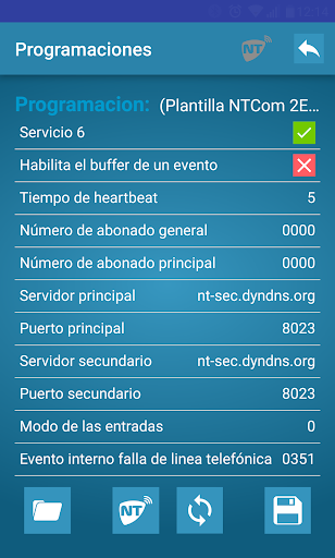 Conectese a los equipos NT-Link o NT-Com a travez de la interfaz BlueTooth. Consulte y modifique la configuracion o acceda al panel de la alarma. Comparta plantillas y configuraciones.
