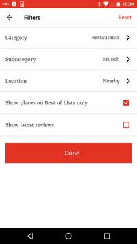 • Connect the app with your Facebook account to mark favourites, rate local businesses and upload photos.