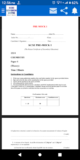 KCSE Revision NOTES : CHEMISTRY app, welcome to the home of KCSE Chemistry Revision Notes. 📚 In this online platform you can read & request all the KCSE Chemistry Revision Notes and questions in PDF format.