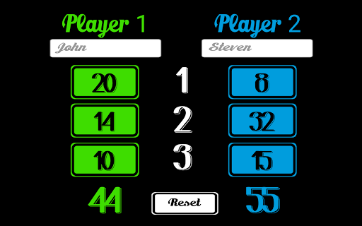 ကစားသမားအမည်များကိုရွေးချယ်ပါ။အရောင်များရမှတ်တစ်ခုစီသည်ဂဏန်းတွက်စက်တွင်သာမကလက်ရှိအစုအတွက်စုစုပေါင်းဖြစ်သည်။ပျောက်ဆုံးနေသောမြို့ကြီးများကဒ်ဂိမ်းအဆုံးတွင်ကစားသမားတစ် ဦး ချင်းစီ၏စုစုပေါင်းကိုတွက်ချက်ခြင်းနှင့်ပြသထားသည့်အတိုင်းတစ် ဦး ချင်းစီ၏ကဒ်များနှင့်တစ် ဦး ချင်းစီအတွက်ရမှတ်များဖြစ်သည်။